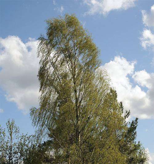 Береза бородавчатая – это дерево, достигающее высоты до 20 метров, с изящными свисающими ветвями и гладкой белой корой. У старых деревьев кора в нижней части ствола становится темно-серой и трещиноватой. Годичные ветви имеют красновато-бурый оттенок, а молодые ветви гладкие и покрыты мелкими бородавочками. Кора молодых деревьев сначала коричневая, затем становится белой и легко отслаивается. Листья ромбически-яйцевидной или треугольно-яйцевидной формы, в основании широко-клиновидные или почти прямо усеченные, иногда почти сердцевидные на крыльях или порослевых побегах. Концы листьев заостренные, края дважды-острозубчатые, с обеих сторон гладкие. Длина листьев составляет 4-7 см, ширина – 2,5-5 см. Черешки вдвое-втрое короче пластинок, прилистники яйцевидно-ланцетные, очень маленькие и рано опадающие. Молодые листья липкие и слегка волосистые. Крона березы бородавчатой широкая, у взрослых деревьев более редкая, с длинными тонкими, свисающими побегами.