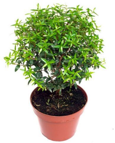 Мирт обыкновенный - это декоративный вечнозеленый кустарник, который в зрелом возрасте достигает высоты 60 см. Его овальные, заостренные листья обладают сильным ароматом и могут использоваться как пряность или в медицинских целях.