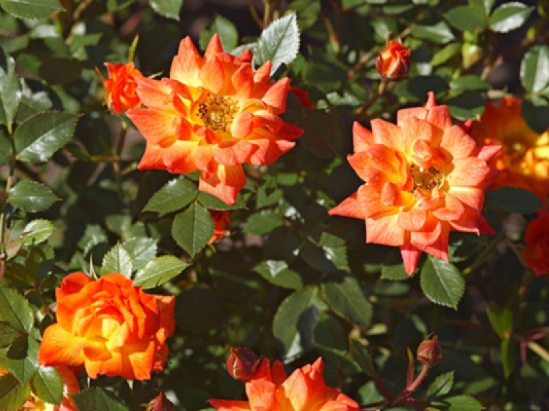 Саженец спрей розы Колибри (Sprey Colibri) привлекает внимание своими заостренно-овальными бутонами и оранжево-желтыми цветками, которые могут варьироваться до абрикосово-желтых оттенков. Цветки имеют чашевидную до плоской форму, достигают среднего размера 3-4 см и обладают махровой текстурой. Они издают насыщенный чайный аромат и собраны в соцветия по 3-5 штук. Листья растения темно-зеленые, овальные, кожистые и блестящие, что создает контрастный фон для ярких цветков. Кусты средней высоты, слабораскидистые, с прочными побегами и кустистой структурой. Этот сорт отличается высокой зимостойкостью и обильным цветением, а также устойчивостью к грибным заболеваниям, что делает его идеальным для групповых посадок и горшечной культуры.